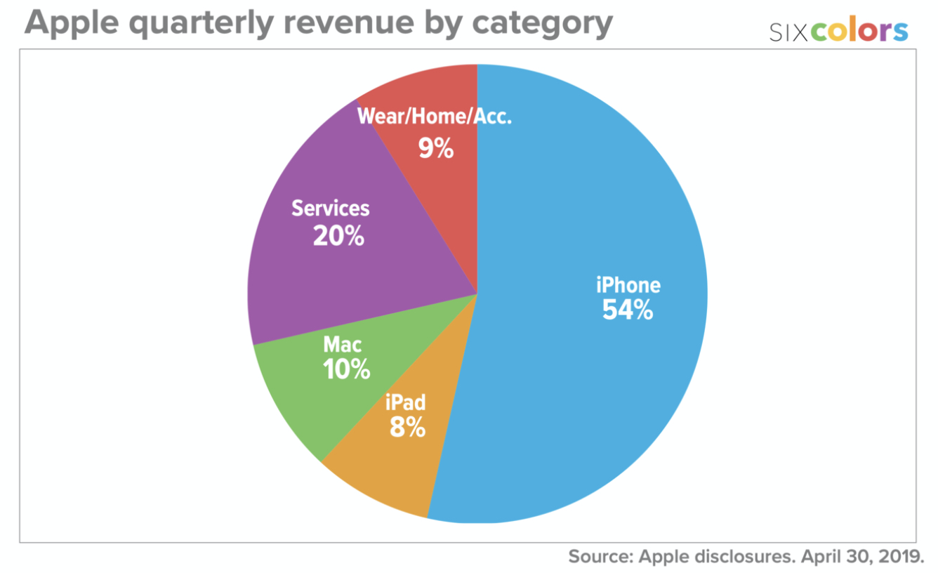 애플 매출의 50%에서 60%는 아이폰에서 일어난다. 애플 하면 아이폰이니 당연할 수 있지만 눈여겨 봐야할 것은 애플의 서비스 분야 매출이다. 애플은 하드웨어 제품을 파는 기업이 아니라 이제는 콘텐츠에 포커스를 맞추고 있다. 애플은 아이폰을 파는 것이 아니라 자신의 생태계를 경험하고 싶어하는 소비자들에게 아이폰이나 맥, 아이패드 등을 파는 것이다.