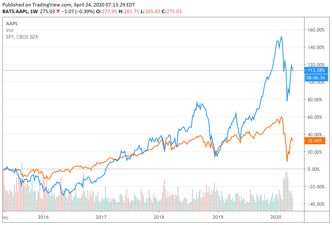스티브 잡스 사후 애플의 혁신 적인 제품이 기억나는가? 기억나는 것이 없을 것이다. 그러나 5년전 애플 주가는 130달러였고, 지금은 275달러다. 글로벌 경제위기를 겪고 있는 지금의 애플 주식은 5년전 대비 2배가 넘게 올랐다. 개인적으로 윈도우 PC와의 연동이 불편하고, 공인인증서나 삼성페이가 되지 않는 불편함에 갤럭시를 사용했으나 지금은 아이폰, 맥북, 에어팟프로를 들고 스타벅스 창가자리에 앉아 글을 쓴다. 저거 3개를 살 게 아니라 애플 주식을 샀어야(...)