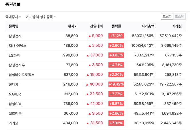 여기서 알아두셔야 할 우리나라 주식 시장의 특징이 있습니다.