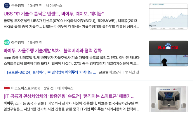 3. Baidu (바이두, 나스닥) - 시가총액 90조